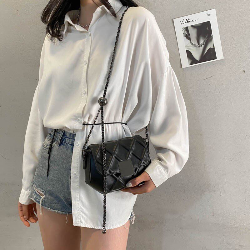 This year Pop packets bag women Xia 2021 new 100 hitch satchel satchel superior sensical mini chain bag genuine leather