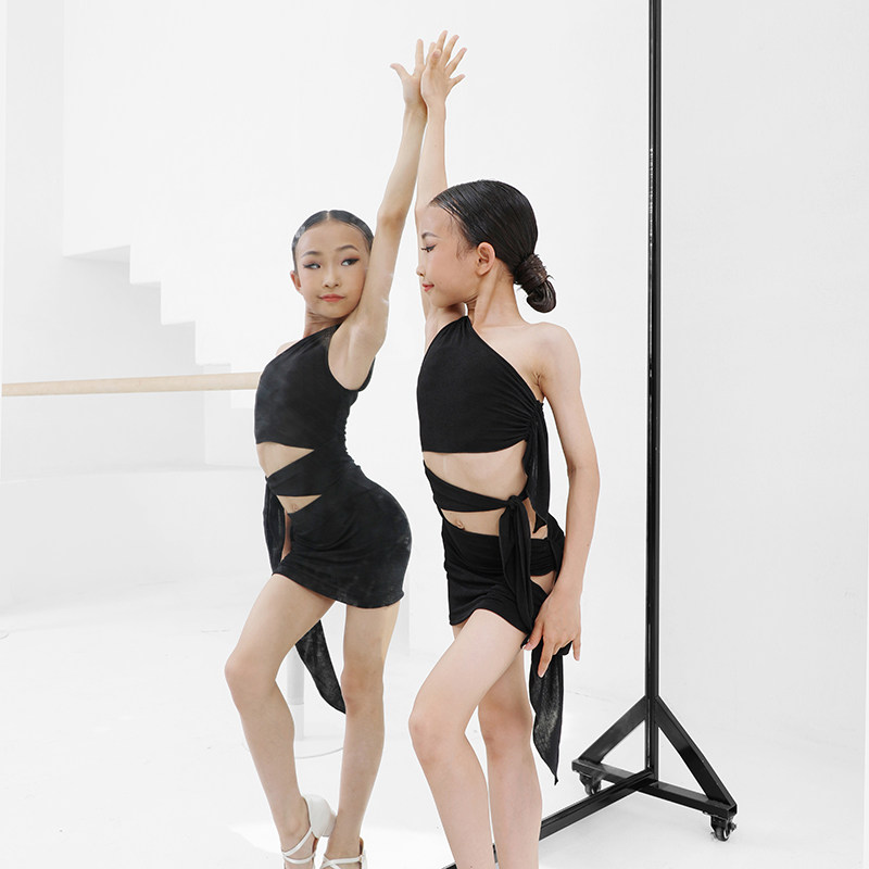 Little ZYM (skimmed smile) dress slanted shoulder cutout straps kids Kids Latin Dance Practice 2126