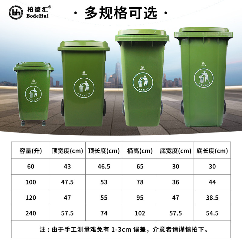 Sanitation Outdoor Super Size Trash Cans Plastic Bucket Large Capacity Commercial Cover with lid cylinder trailer Community has dedicated