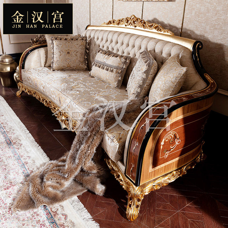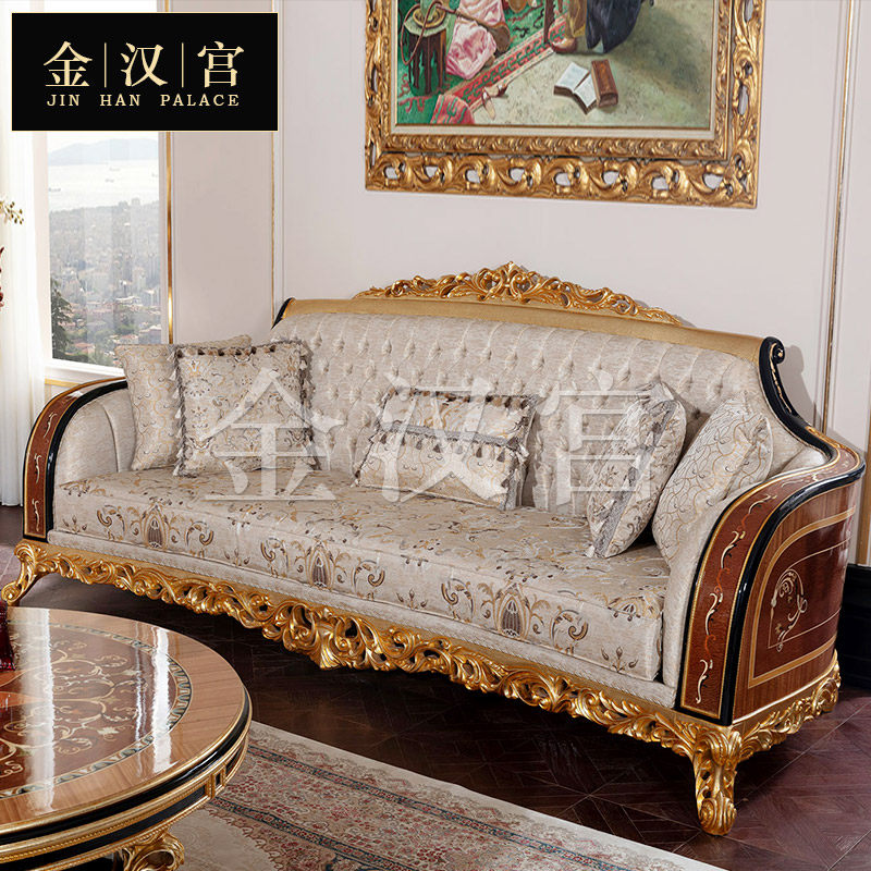 European Solid Wood Sculpture Sofa House French Living Room Collected Fabric Cottage Composition Villa High-end Furniture