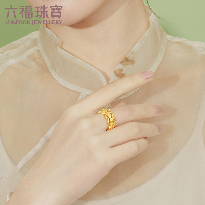Luk Fook Jewelry Ancient Crown Gold Ring Women's Closed Foot Gold Ring Gift Pricing GDG40080
