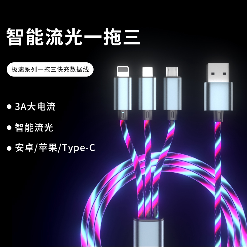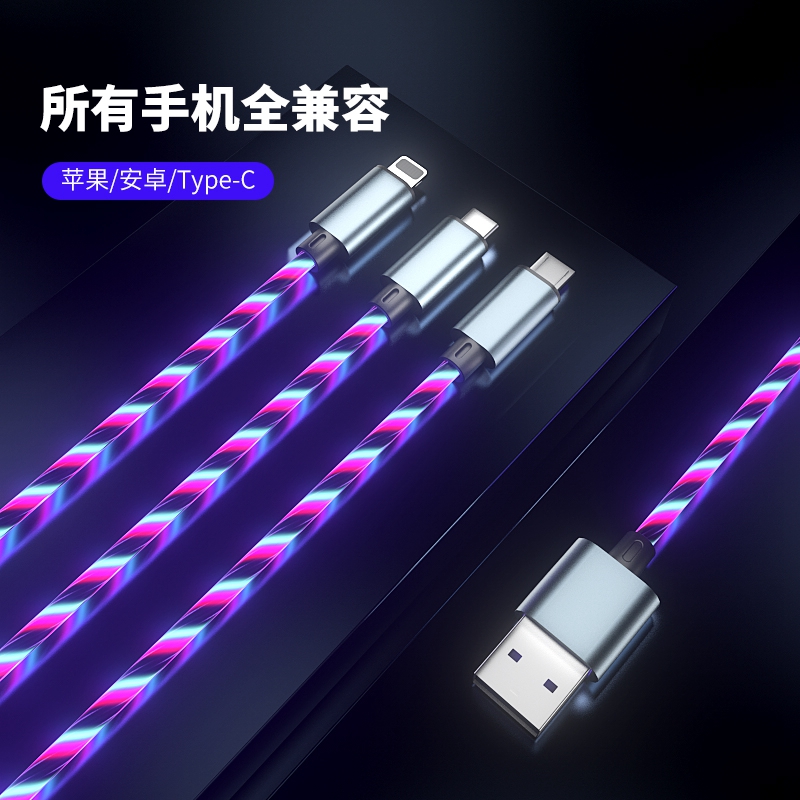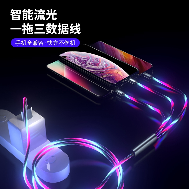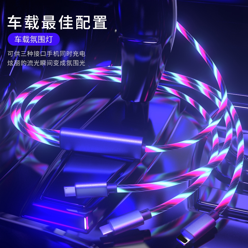 POWER4 one drag three-flow light data line applicable type-c Android Apple three-in-one horse race lamp Seven color charging line on-board fast charging Huawei vivo Xiaomi universal trembling with the same flash charge