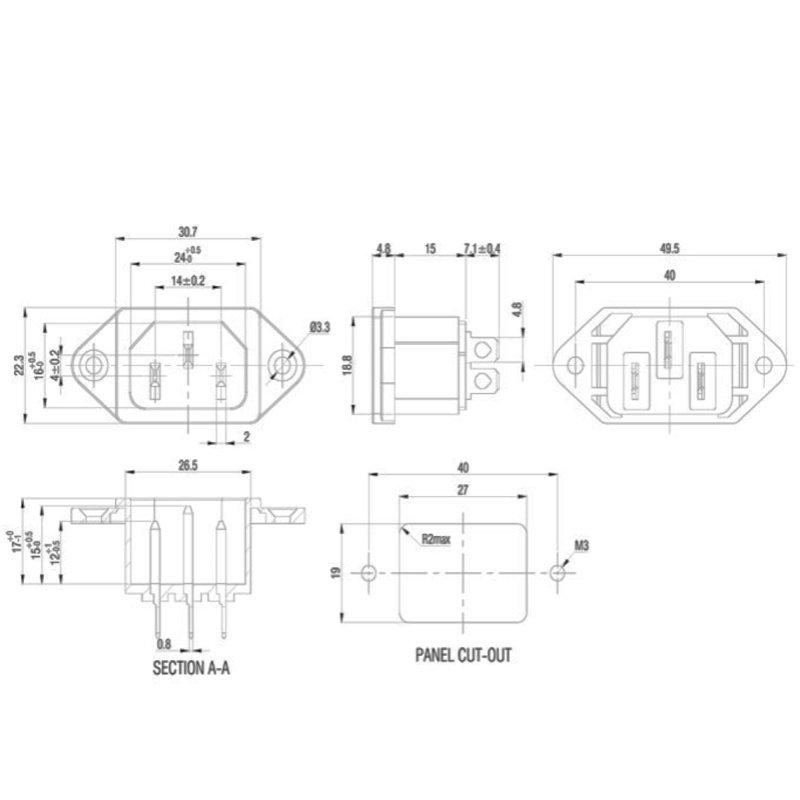 DB-14-1 Type Wiring Socket Commune with Ear AC Power Computer Appliance UL CCC VDE Certification 15A