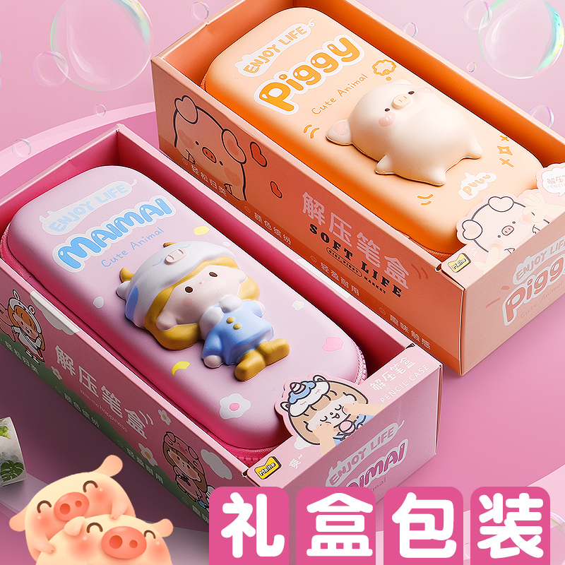 Decompression Decompression Pen Box Pencil Case Girl Children Kindergarten Elementary School Students Junior High School Girls Hearts Can Love Girls 2021 New Pop Net Red Pen Bag Large Capacity Beautiful Girl Lead Pencil Case