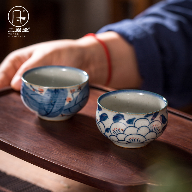 Sanqitang ceramic clay glaze tea cup Chinese blue and white master Cup Tea Cup Jingdezhen kung fu tea set S42163