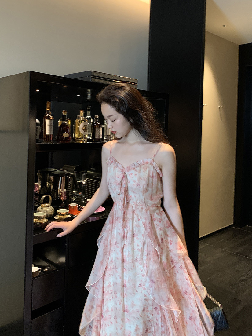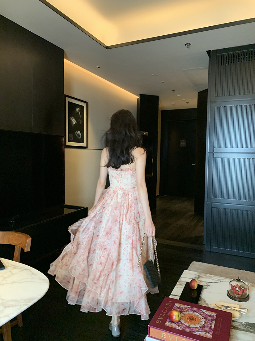 (Limited Time Clearance) Retro Suspender Floral Dress Women's Summer Slim Waist Slimming First Love Fairy Tulle Dress