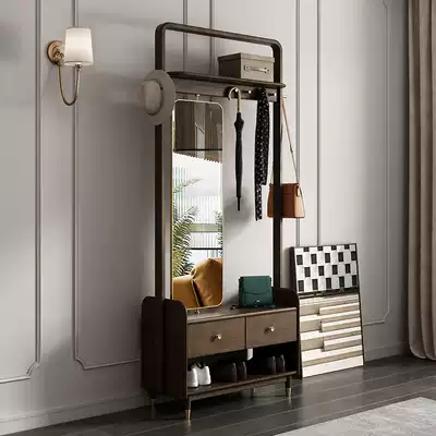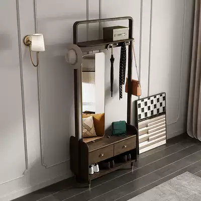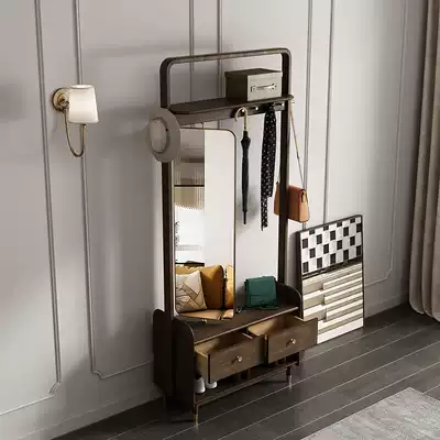 Nordic middle-aged industrial style solid wood full-length mirror Household bedroom storage storage floor-to-ceiling mirror Retro fitting full-length mirror