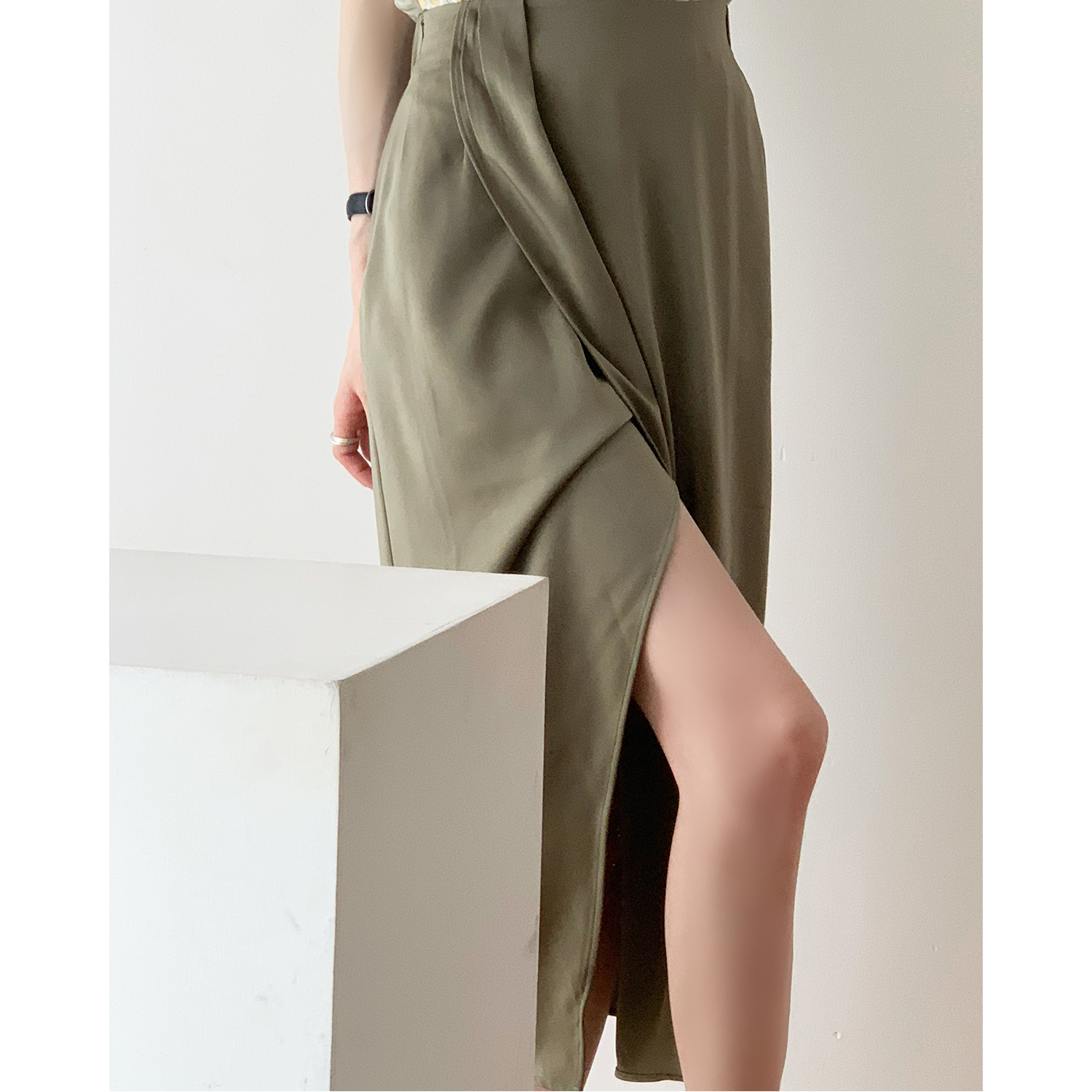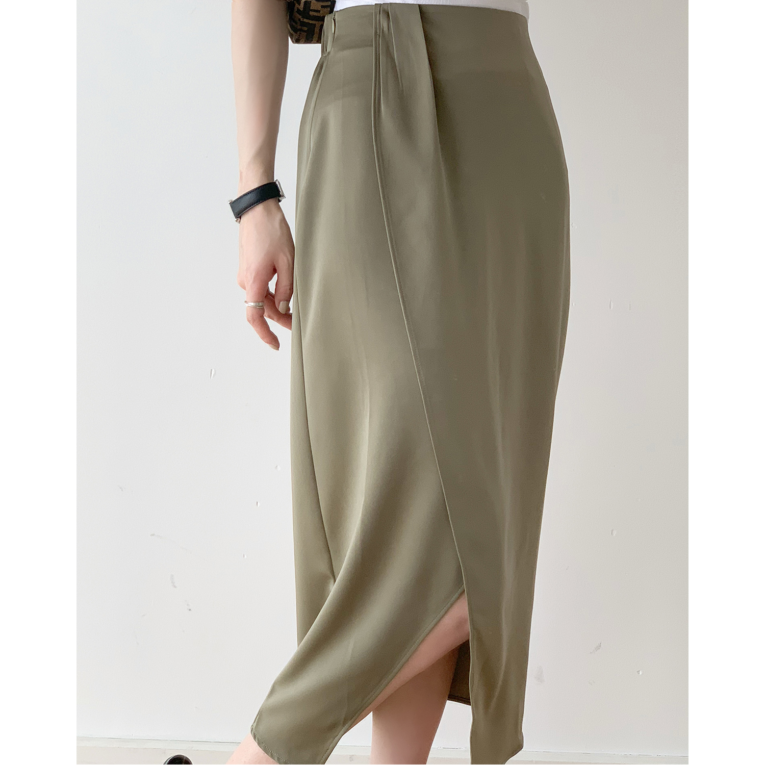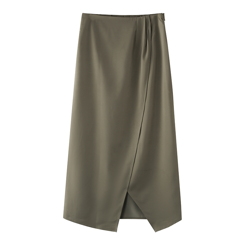 Fa-style retro satin A character half body dress female summer front open fork design sensation small crowdwaist display slim fit hip tea hysteria