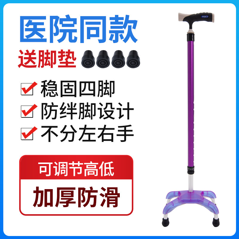 Elderly Crutch Four Feet Telescopic Cane Seniors Crutches Aluminum Alloy Light Multifunction Light Anti Slip Walking Aids-Taobao