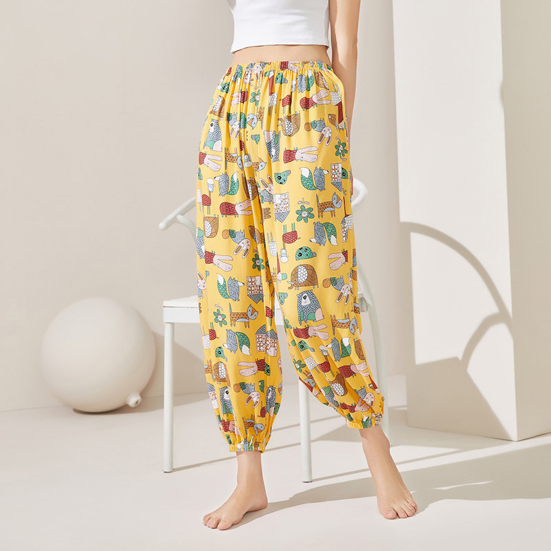 Good wave lingerie female summer casual printed sleeping pants can be worn out of air conditioning room casual long pants home conserved HJK2120