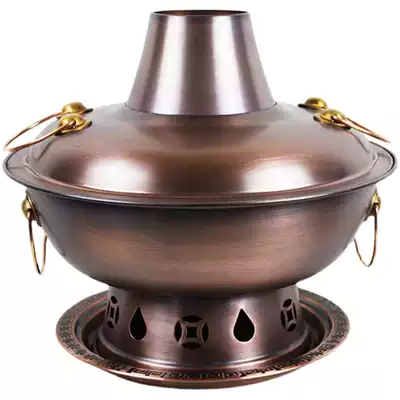 Copper hot pot Pure Copper old-fashioned charcoal copper pot Chinese style old Beijing Mandarin duck pot thickened pure Copper hot pot stove household low