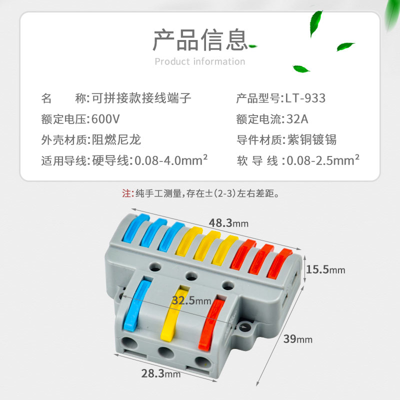 Three-in-nine out quick wiring terminal wire cylinder luminaire connector merge wire instrumental home high power LT-933