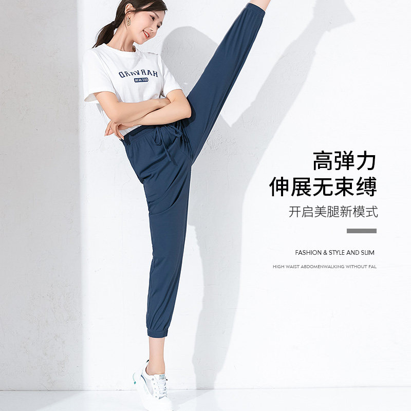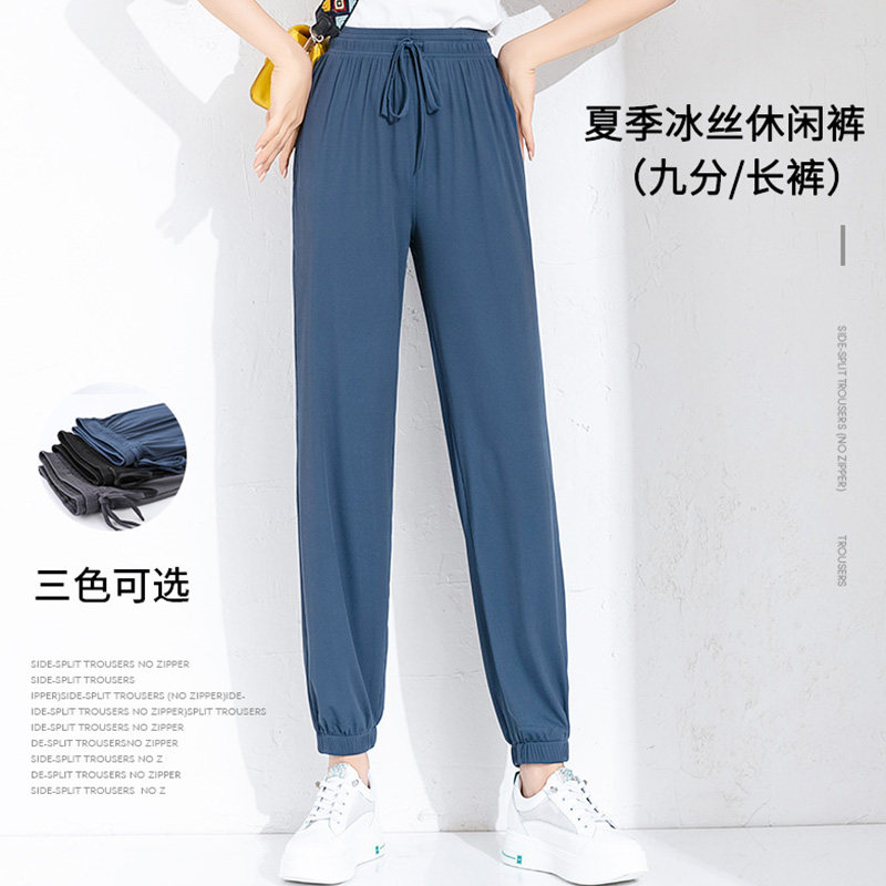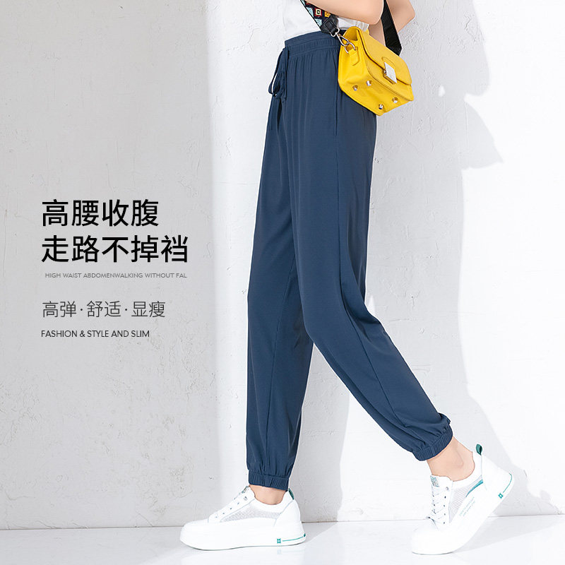 Extra large size women's pants fat mm summer thin section 200 kg women's ice silk high elasticity plus fat increase sports Harun elastic waist
