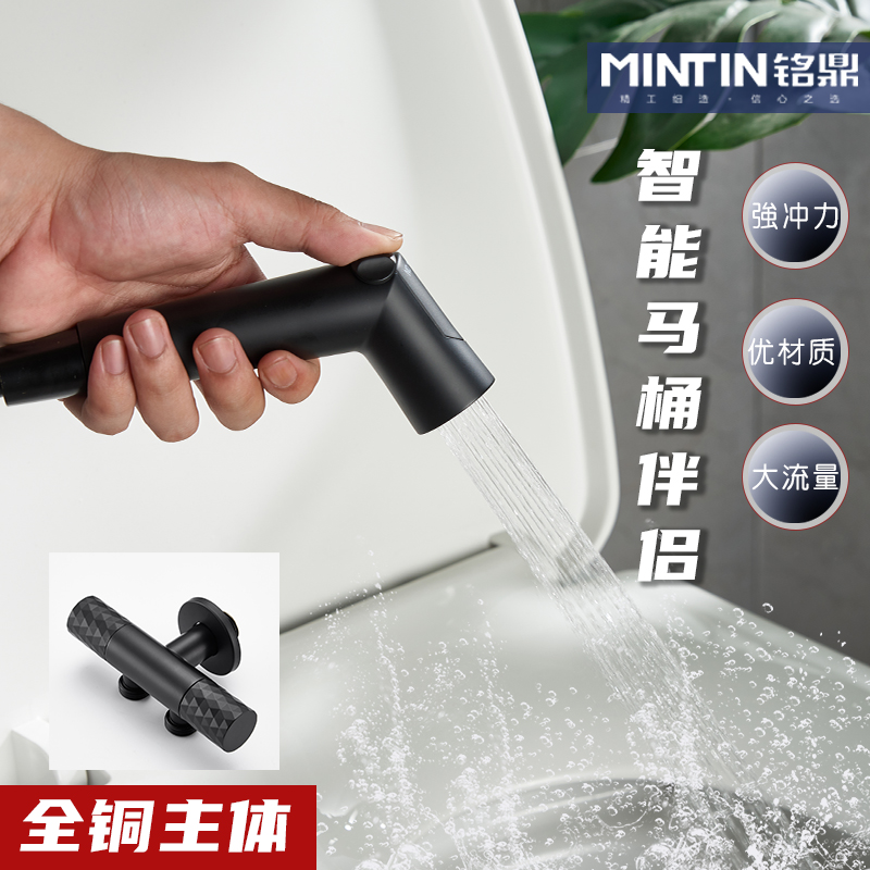 Black smart toilet mate high-pressure spray gun dressing room tap full copper Pressurized Flushing Toilet Woman Cleaner