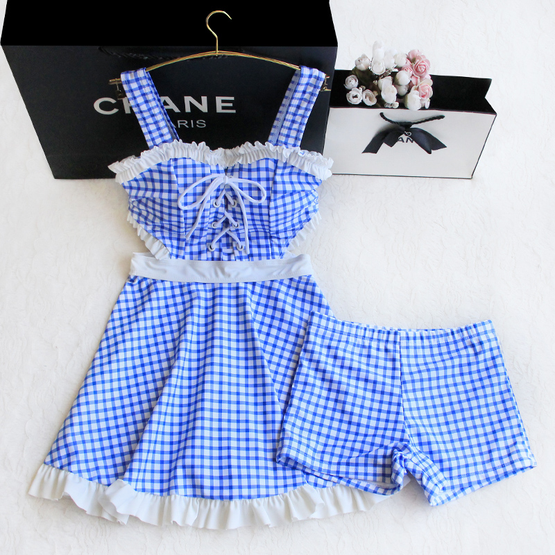 Swimsuit Girl Two-style Bubble Hot Springs Pure Desire of the Lovely Day Ensemble Plaid Little Subconservative Swimsuit