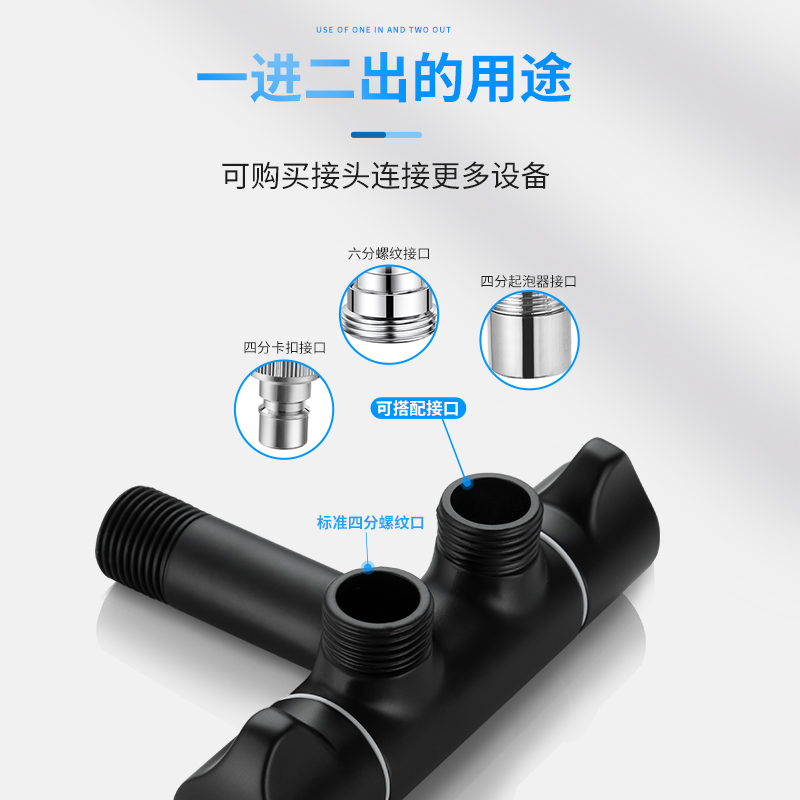 All-copper three-way angle valve one in two out water divider double cut switch one minute two washing machine faucet toilet spray gun