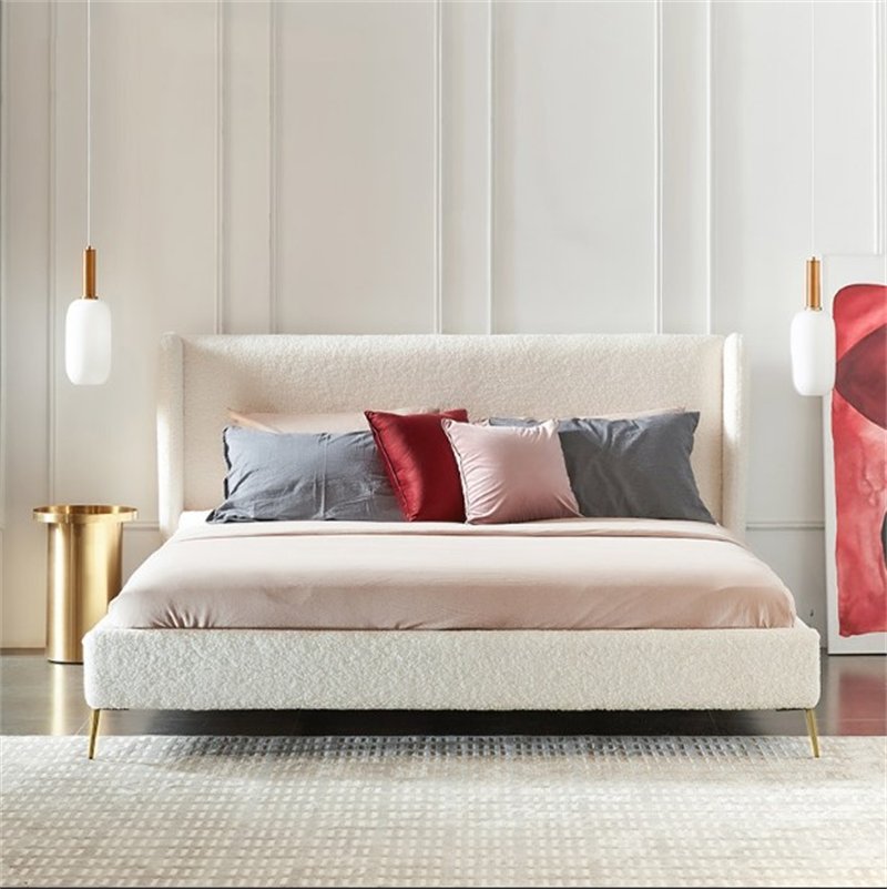 New double fabric bed simple modern bedroom 1 8m teddy velvet children's bed light luxury Nordic minimalist solid wood bed