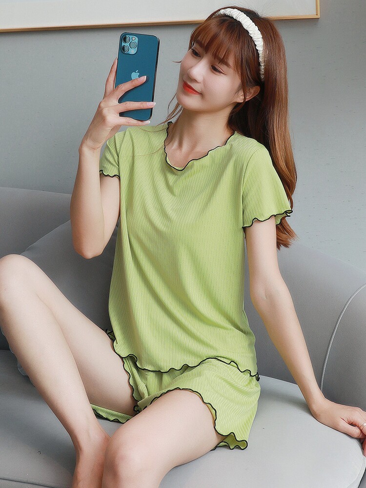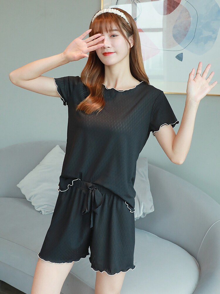 Pajamas women's ice silk thin section summer 2021 new short-sleeved shorts net red casual fresh homewear suit