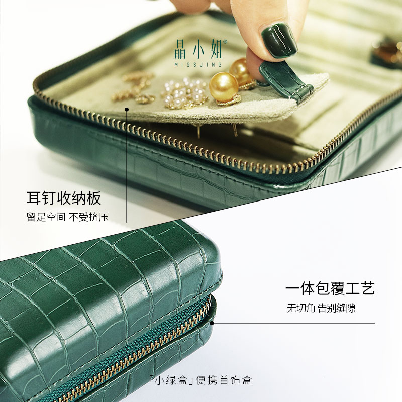 Miss Crystal Little green box portable first decorated box high-grade crocodile leather pu leather portable ring earring first decorated box to send bestie