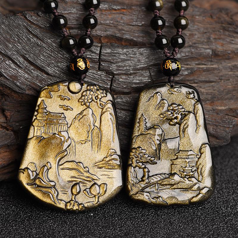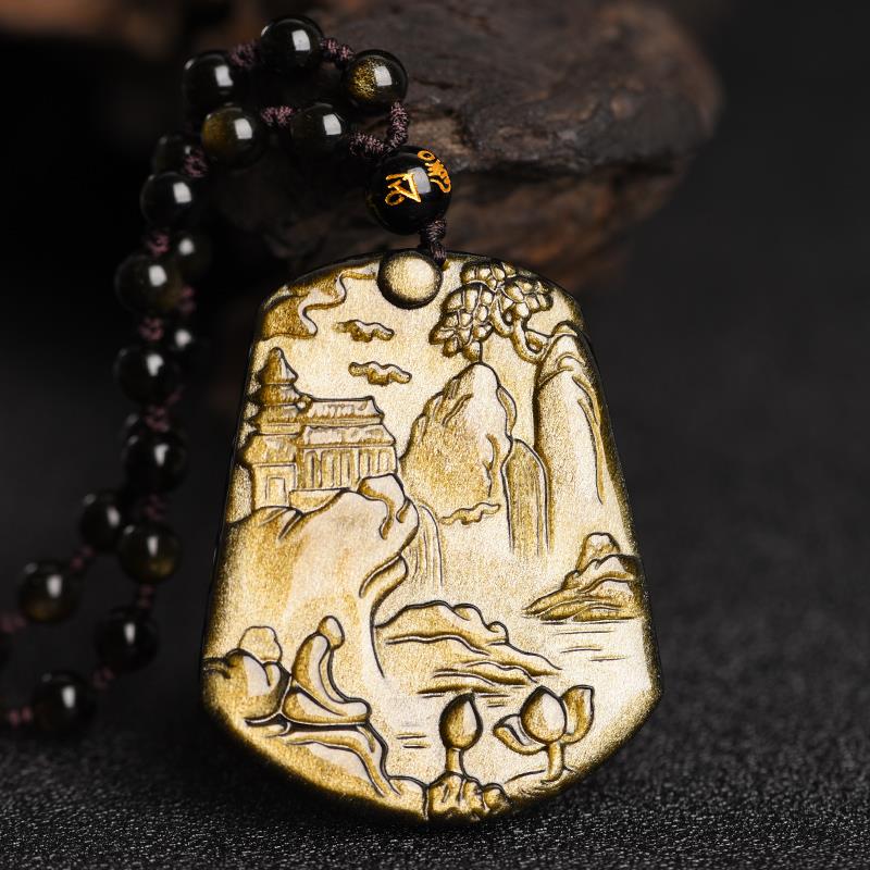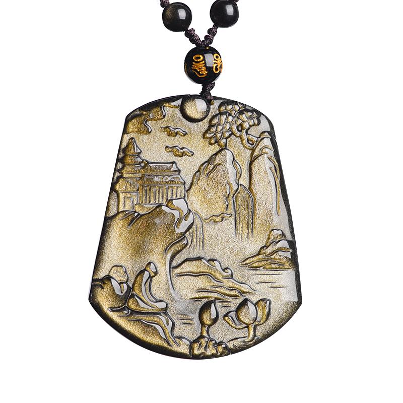 Natural Gold Flair Mountain Waterboard Pendant Black Yaoshi Necklace Chest Huai Hills River Front Road No Amount Water Crystal Ornaments Wool Dressing