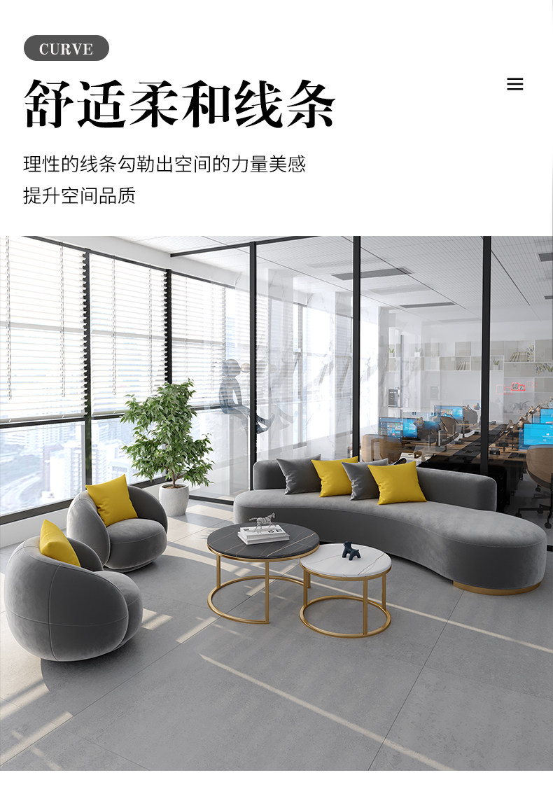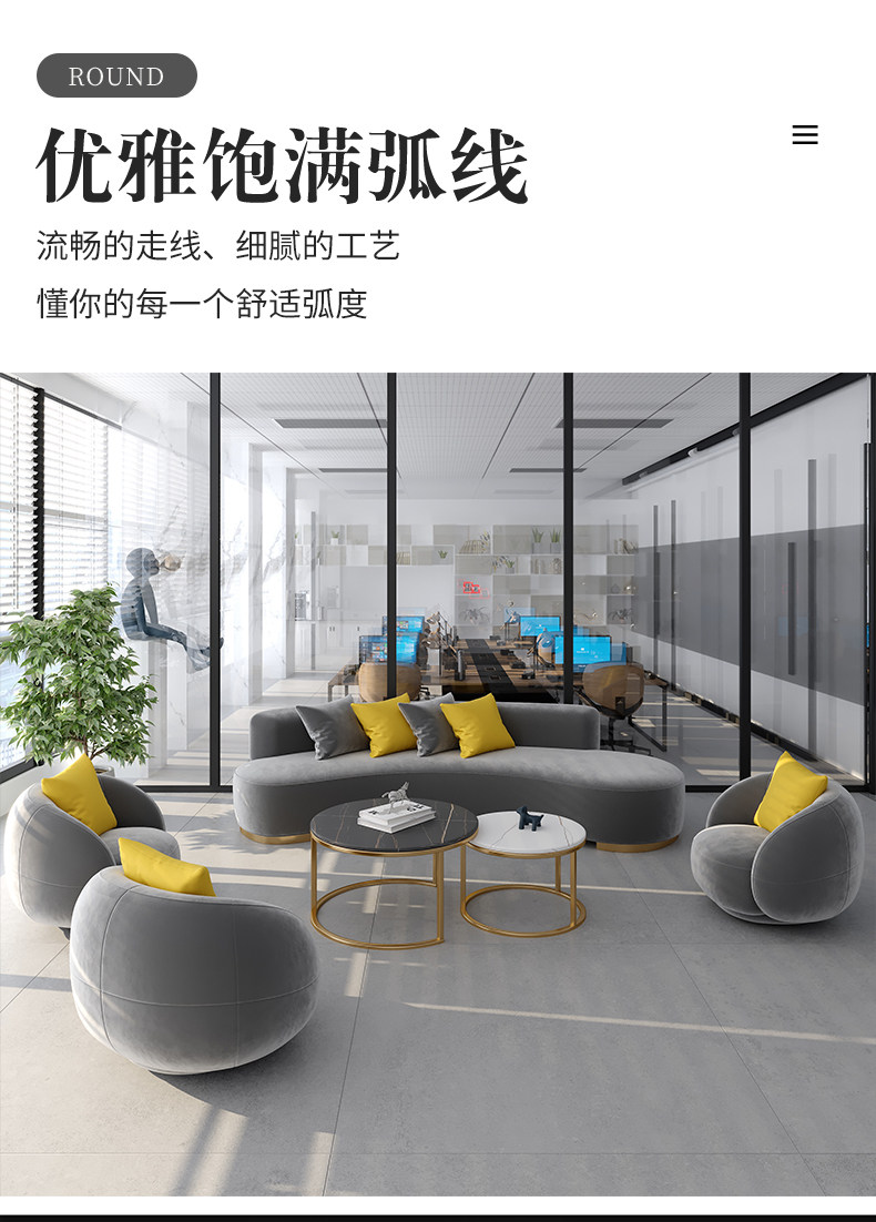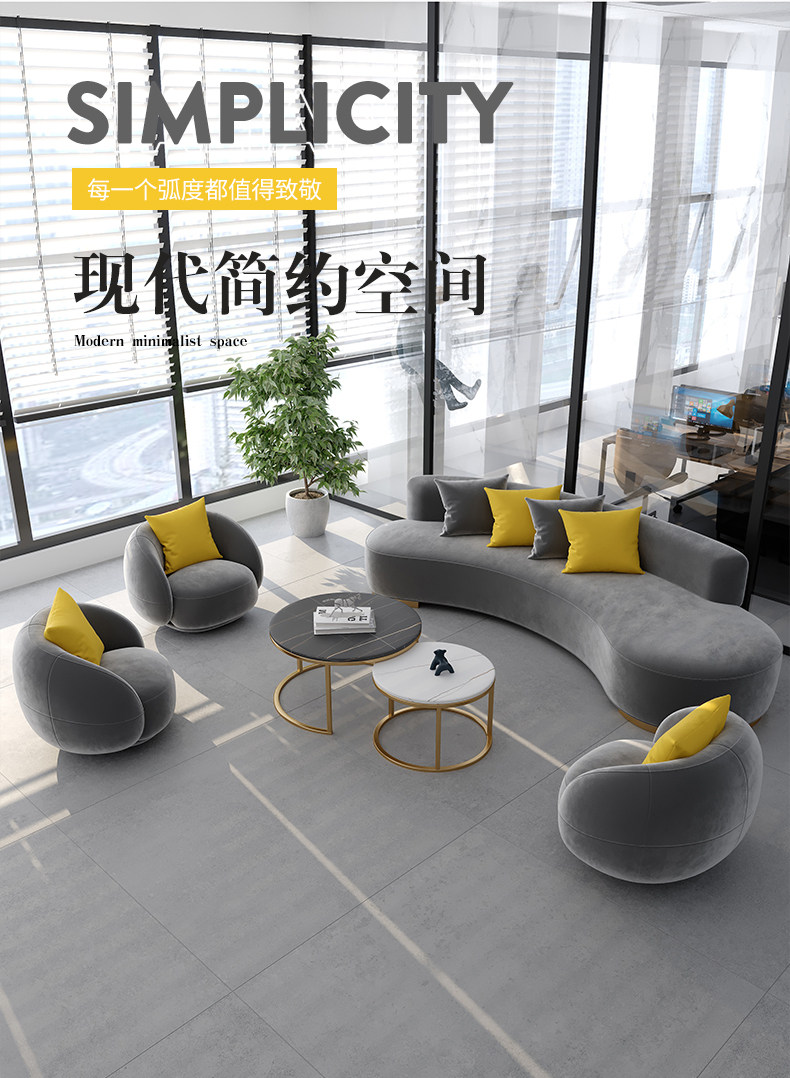 Office Sofa Tea Table Combination Brief Modern Creative Arc guest office Lounge reception Buyi sofa-Taobao