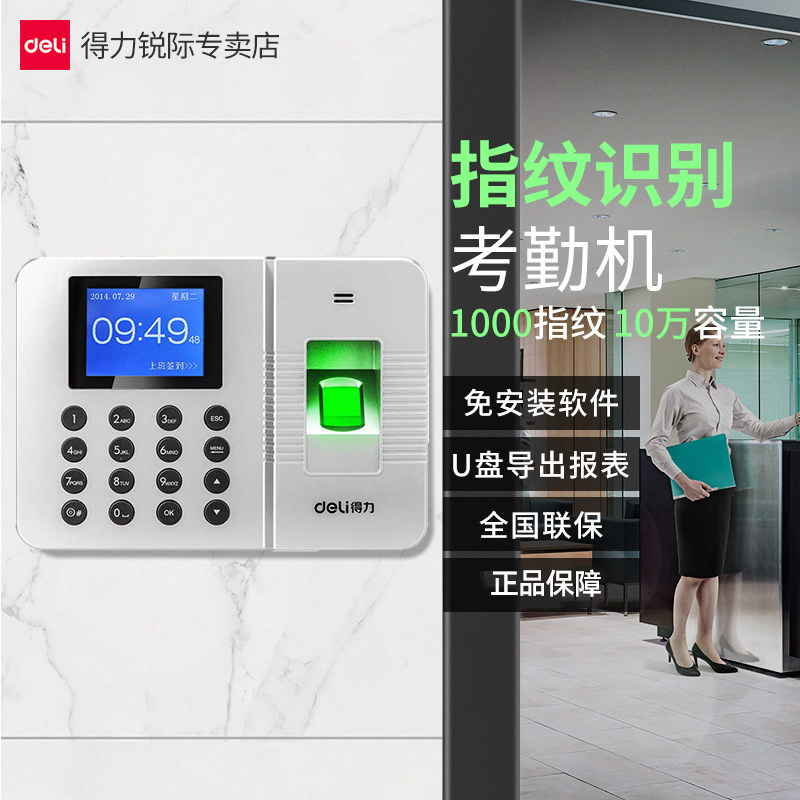 Deli 3960 fingerprint time attendance machine punch card machine intelligent employee identification sign-in and commute all-in-one machine silver