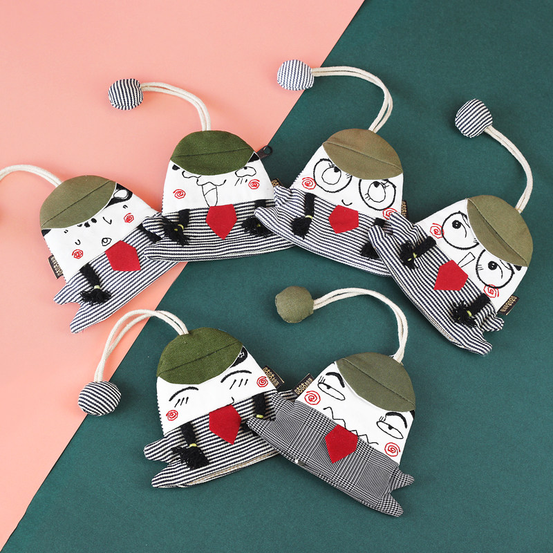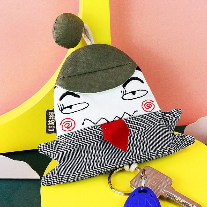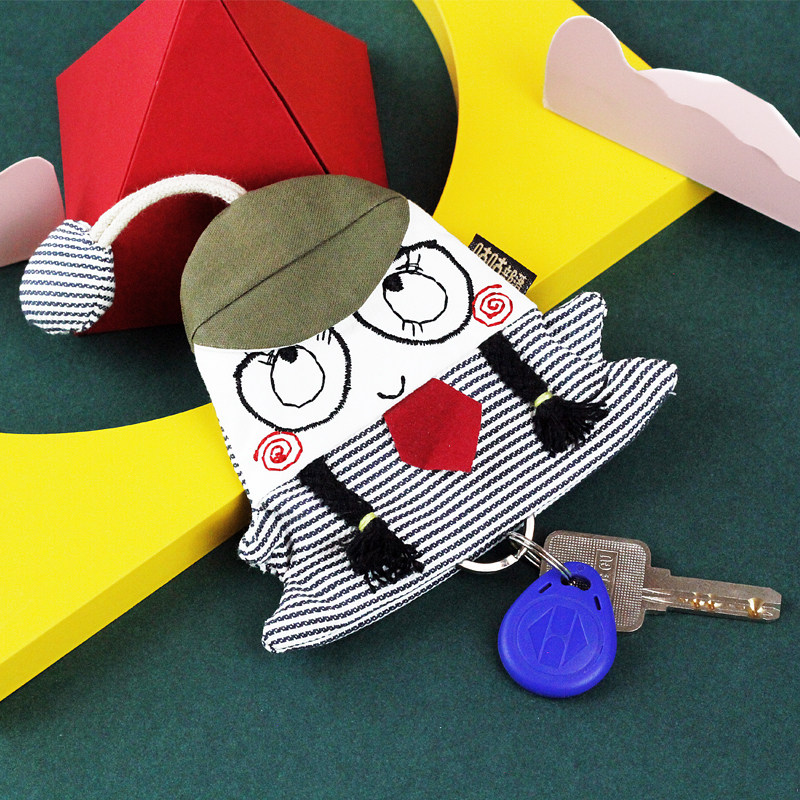 Original design military cap fabric key bag cute cute expression multifunctional key chain