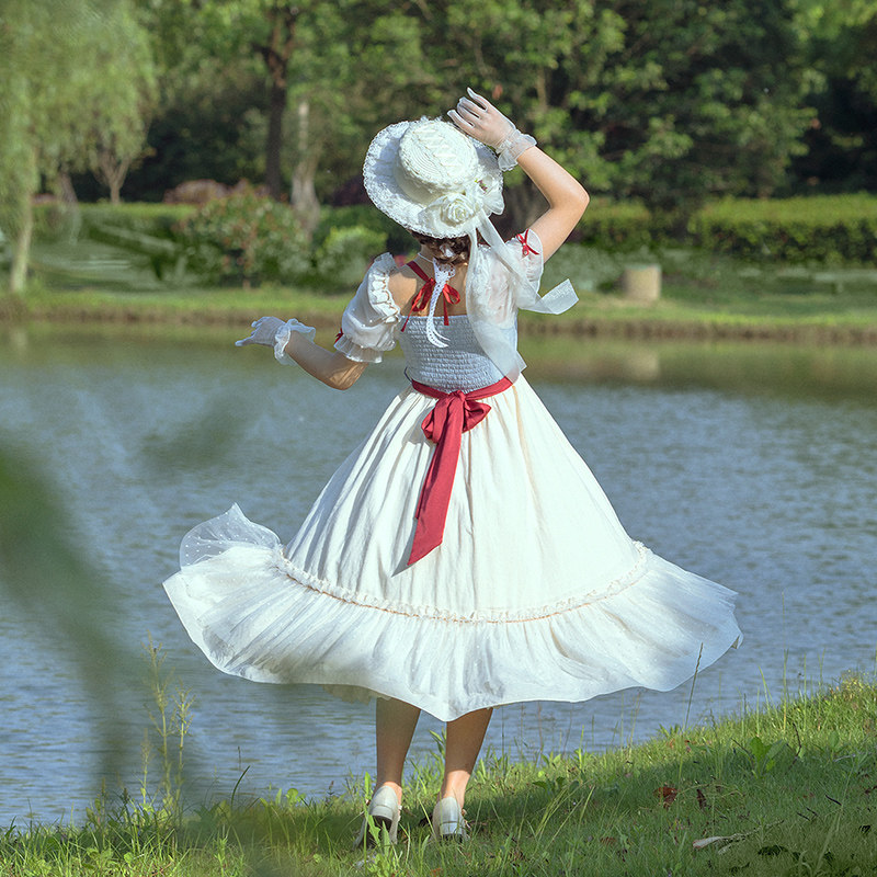 (Moonlight Ball op) withpuji original design Two wearing straight shoulder mesh yarn nail beads elegant lo skirt summer