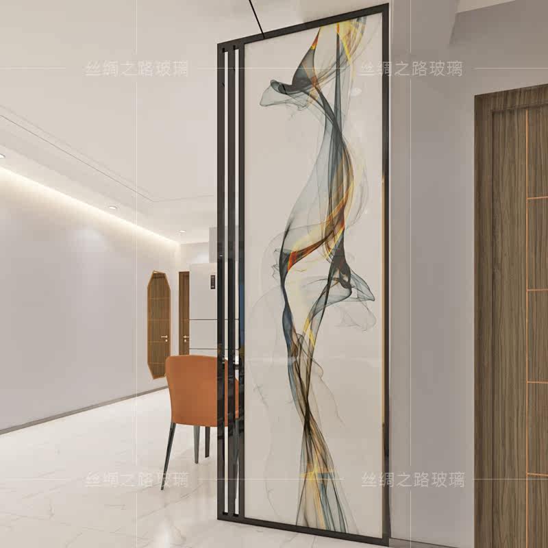 Custom home entrance net red partition Bedroom Modern light luxury sandwich silk glass screen background wall Home improvement living room