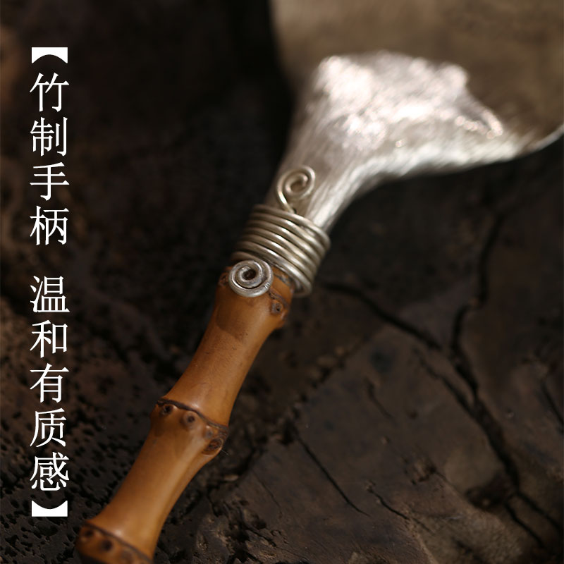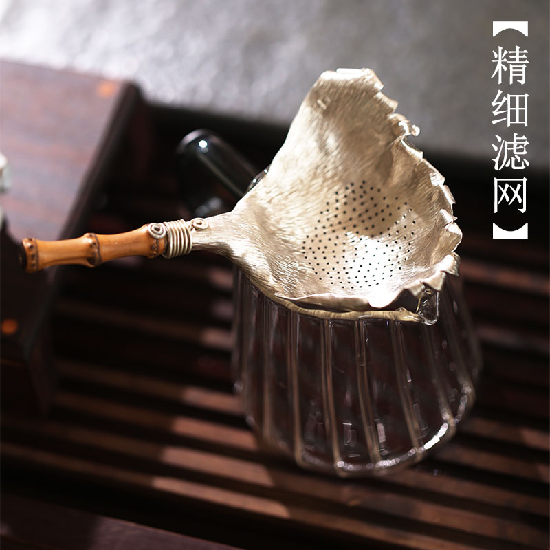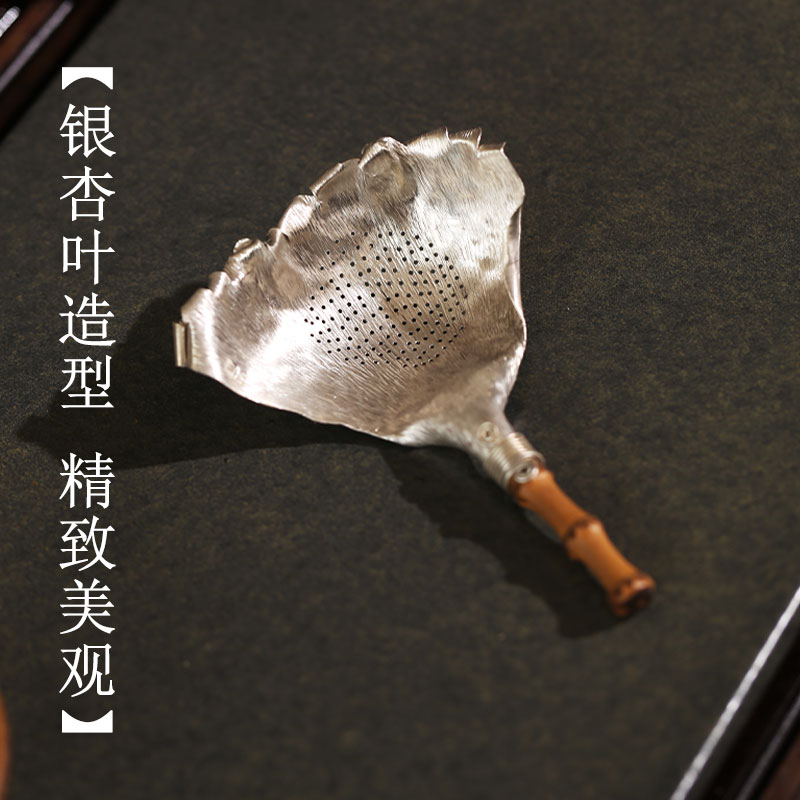 Leisure Yunyawan handmade creative bamboo handle ginkgo leaf shape tea filter sterling silver tea slip net tea filter tea ceremony
