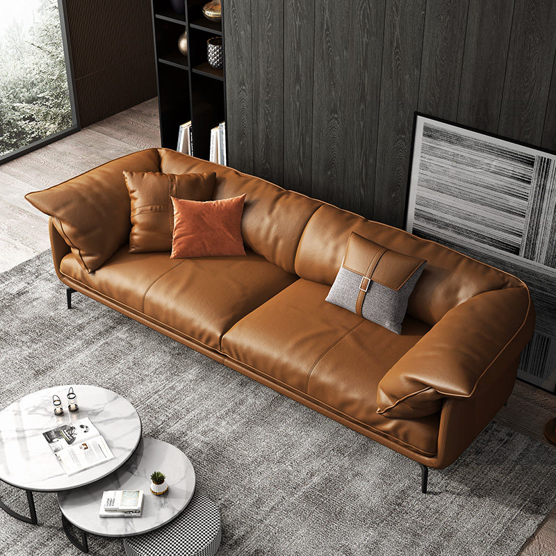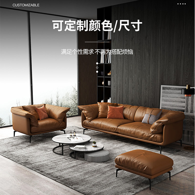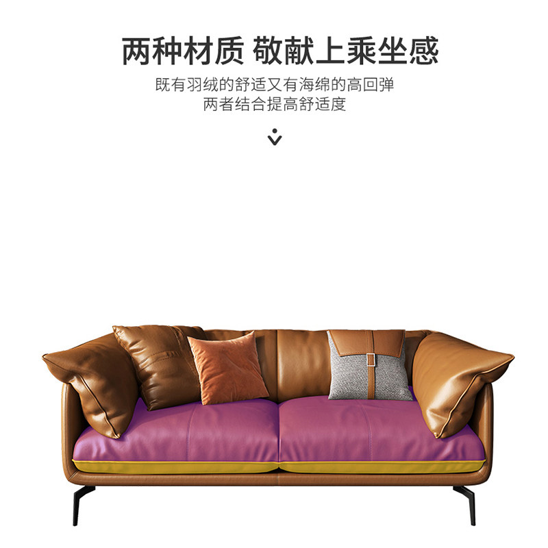 Leather down sofa three-person living room Nordic simple modern light luxury Italian minimalist nappa leather sofa small apartment