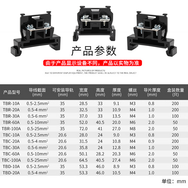 Pure copper terminal terminal TBR - 10A 20 100A combined guide rail fixed - line terminal block