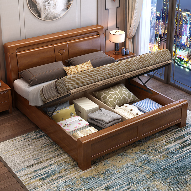 New Chinese style solid wood bed double bed 18m master bedroom modern minimalist factory direct sale economical single bed furniture