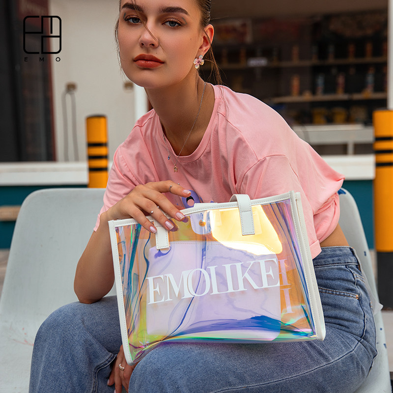 EMO2021 new fashion cool laser bag large capacity tote bag simple handbag winter women's shoulder bag
