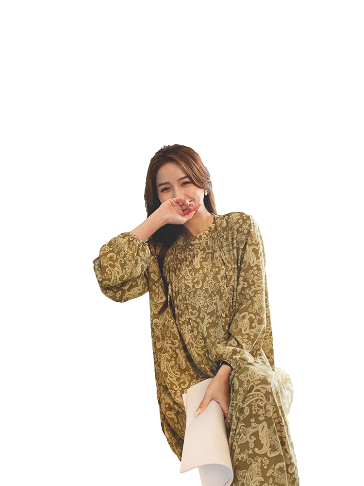 Lecea Alice tea break French dress 2023 new Korean version of retro loose sleeved flower skirt