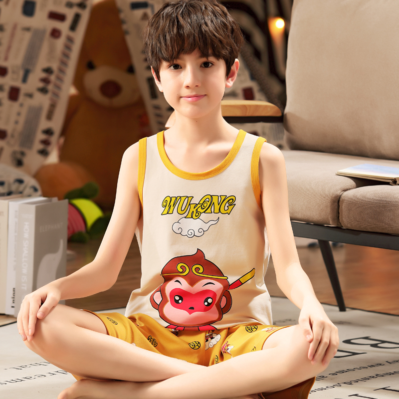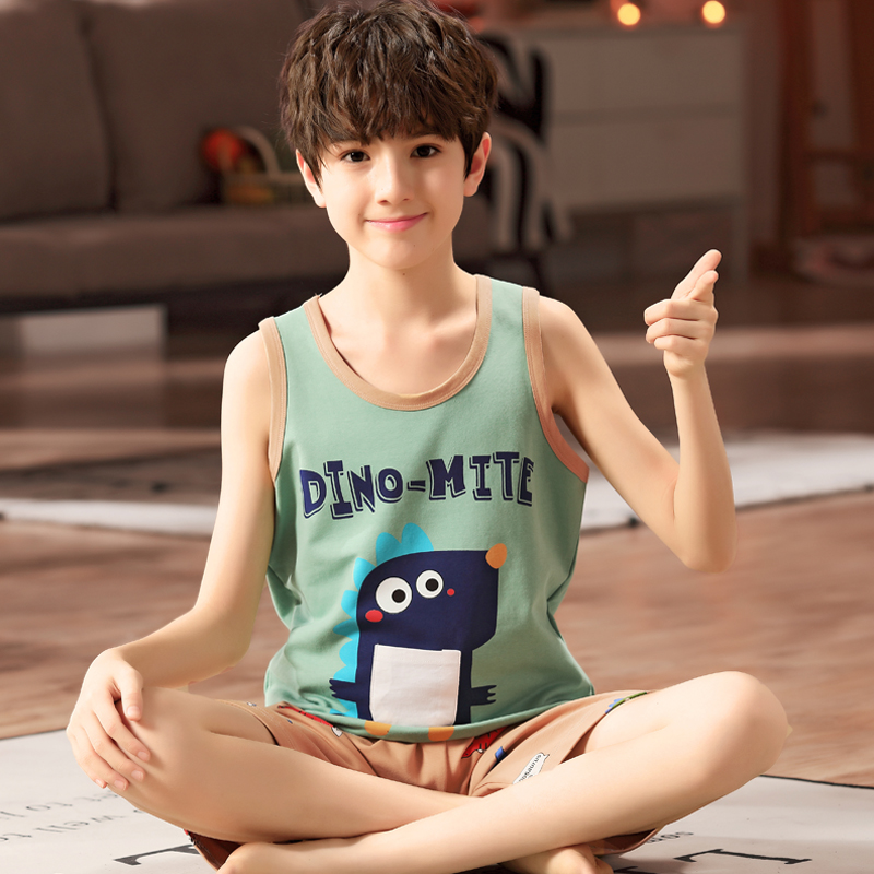 Boy Boy Vest Sleepwear Boy Cartoon Elementary School Children Pure Cotton Summer Thin inside wearing sleeveless sweat suit