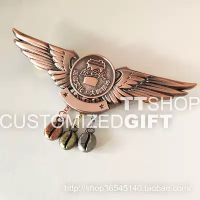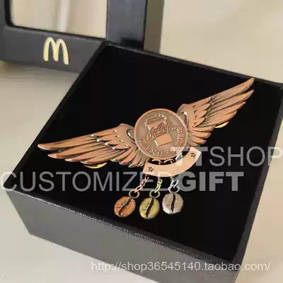 McDonald's coffee beans Boutique wings retro copper badge medals medals brooch with gift box support customization