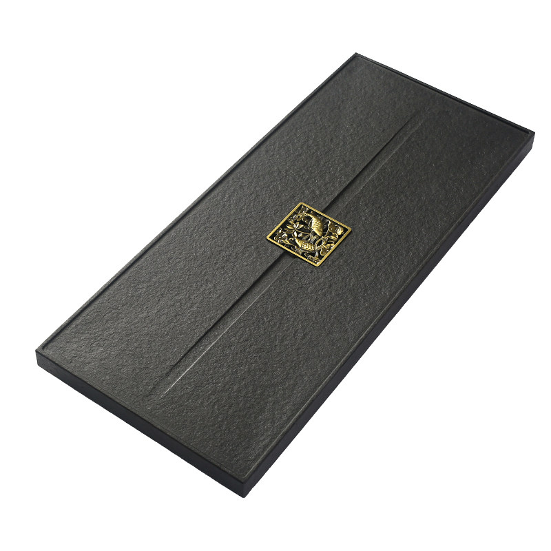 Natural black stone tea tray simple whole stone household tea table size modern tea sea tray tea set