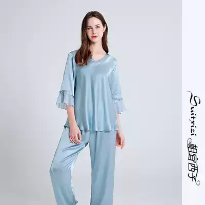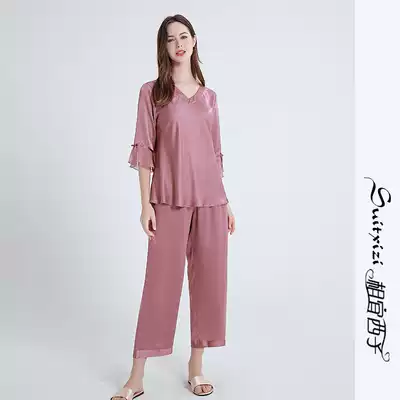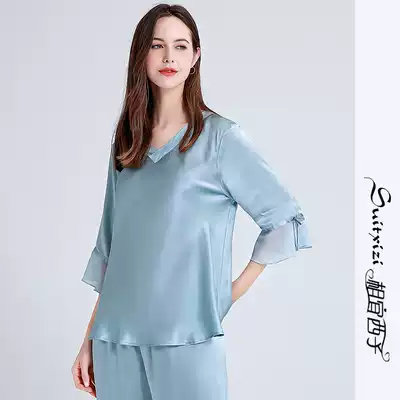 Yixi silk pajamas women's suit 100% mulberry silk heavy silk autumn winter sleeve home clothes can be worn outside