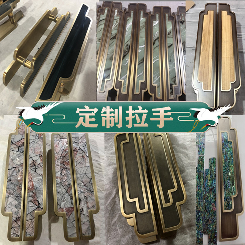 New Chinese style Xiangyun antique Xiangyun door handle black bronze solid wood sliding door glass door handle hotel set