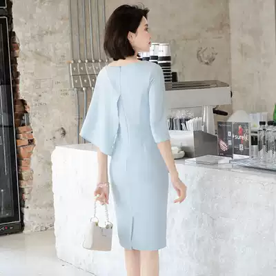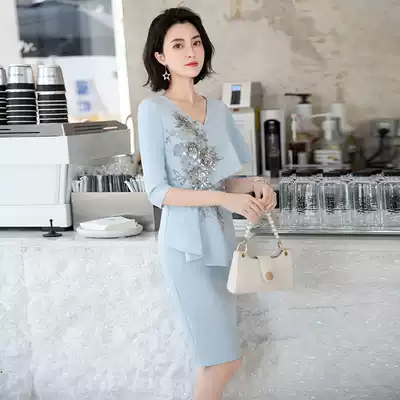 2021 New Party evening dress dress feminine light luxury niche high-end mother noble blue usually wear autumn