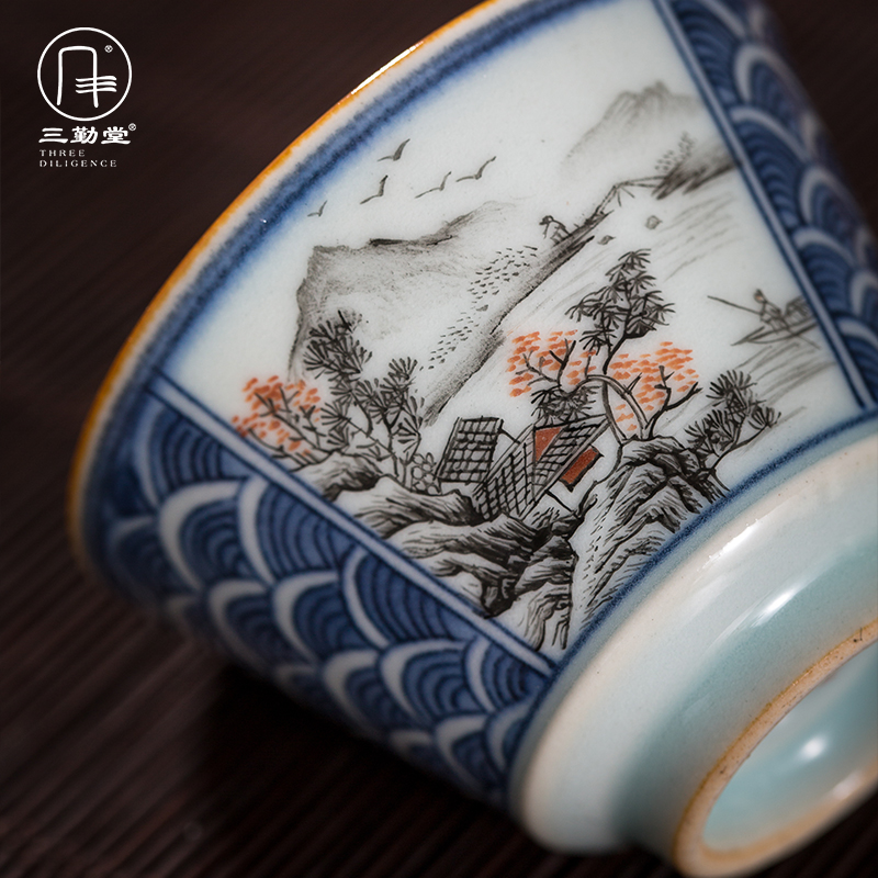 Sanqitang tea set Jingdezhen ceramic Chinese window hand-painted tea cup Master Cup men's and women's Tea Cup kung fu tea set