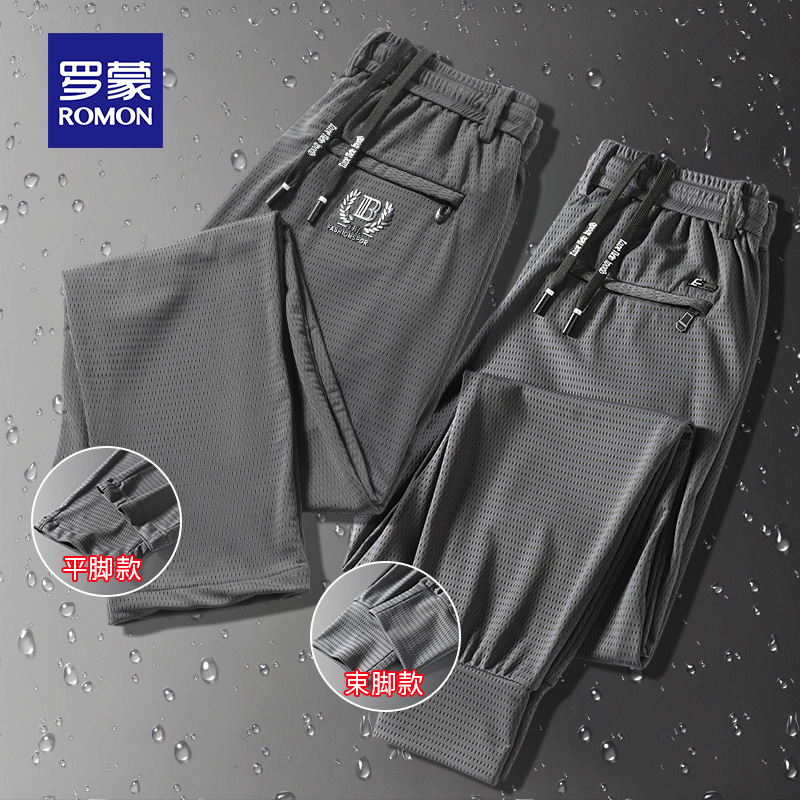 Romon air conditioning pants men's summer thin mesh quick-drying sports casual pants trend loose breathable ice silk pants