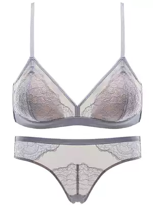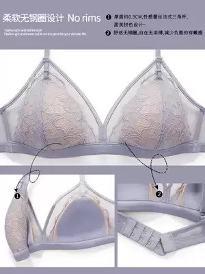 French underwear women's Triangle Cup ultra-thin summer without steel ring bra big chest show small sex lace cute suit