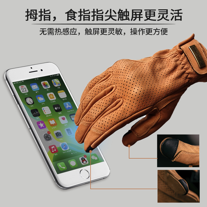 Retro Gloves Spring Autumn Locomotive Locomotive for all seasons riding breathable anti-slip anti-wear and anti-wear touch screen extraterrestrial snail