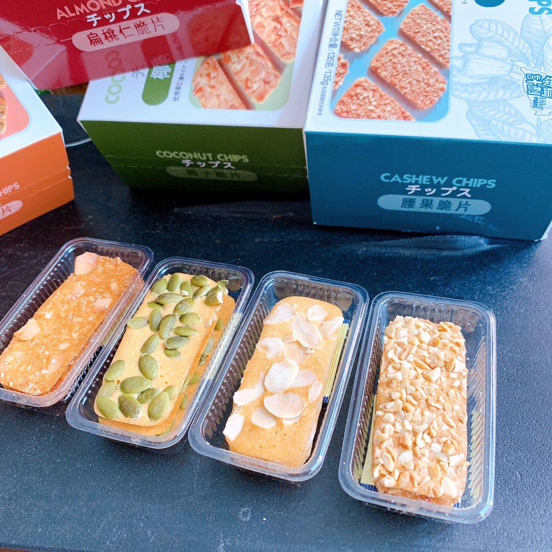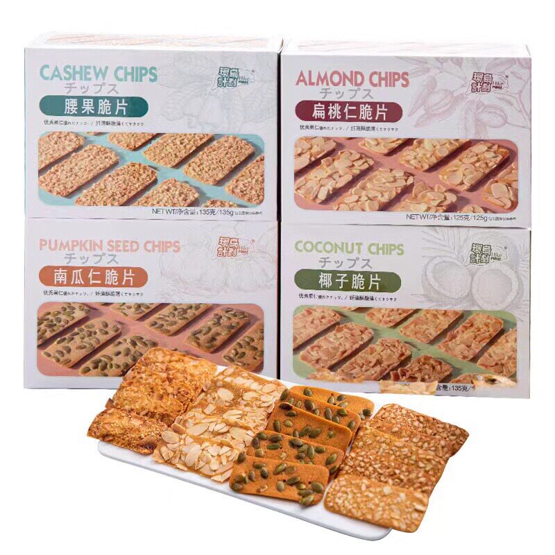 4 boxes of 1 box of each flavor (recommended) 1 box of almond chips (125g) 1 box of pumpkin kernel chips (135g) 1 box of cashew chips (135g) 1 box of coconut chips (135g)