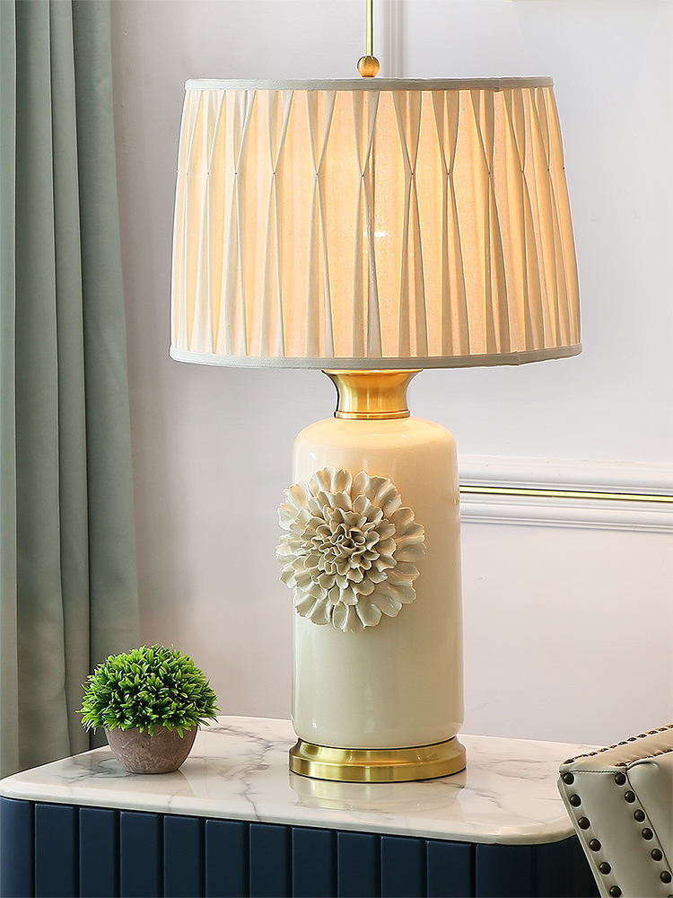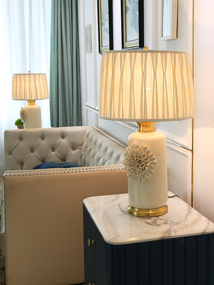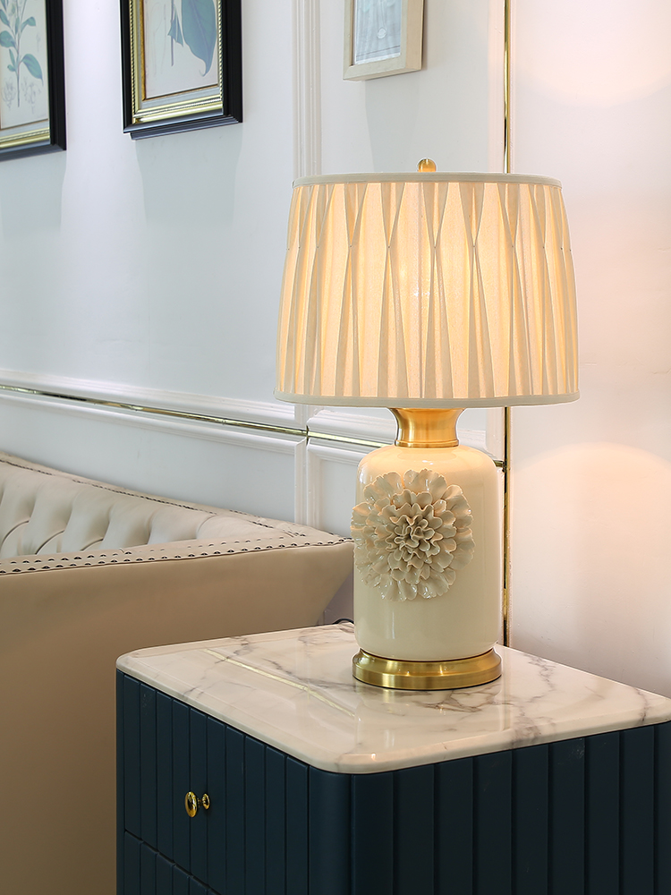 New American light luxury high-end living room all copper ceramic table lamp bedroom European style bedside lamp hotel luxury model room
