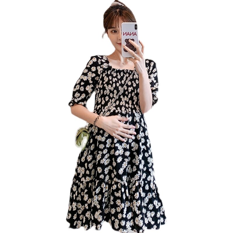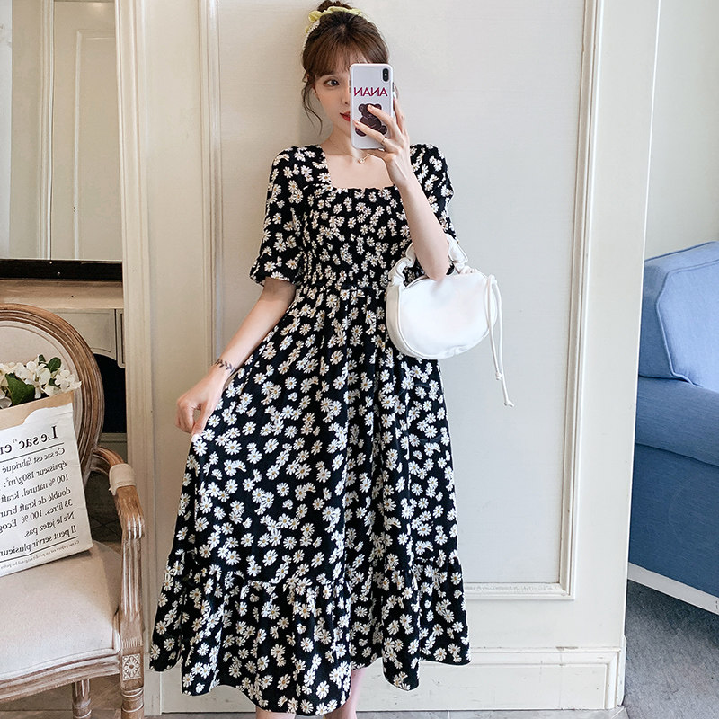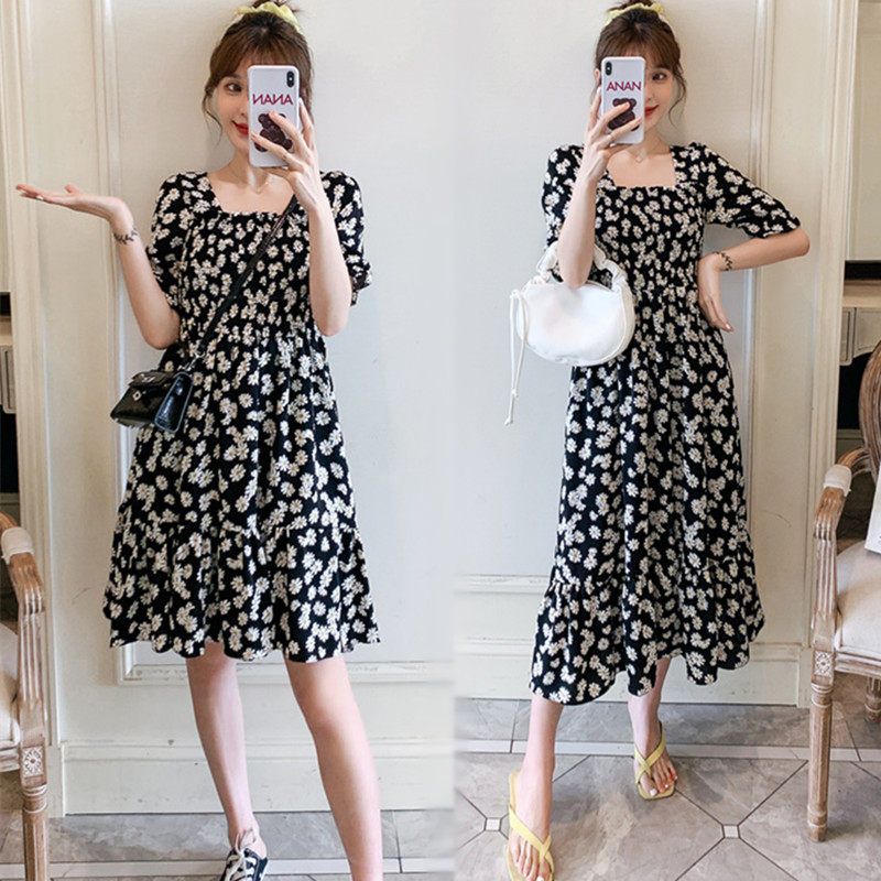 Japanese pregnant women summer dress new fashion Western style floral dress loose thin large size short-sleeved chiffon dress