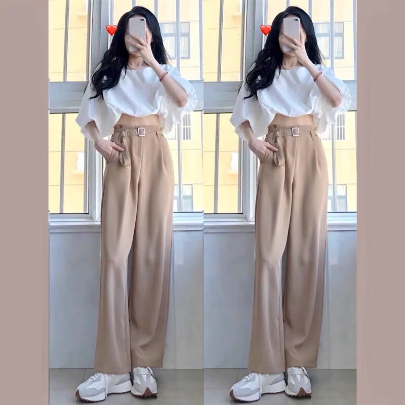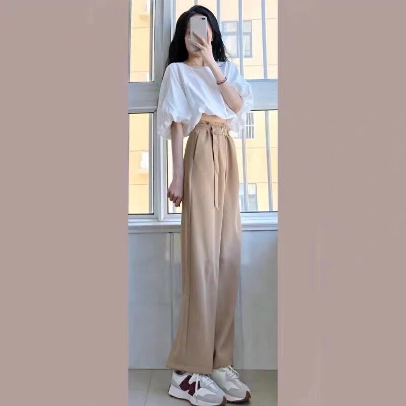 Single short sleeve blouses (burrito fashion milks wearing a hitchhiking 2022 new small sub-superior sense design feelings little Korean drama wearing a hitch early spring chic-style platycoon) single casual pants