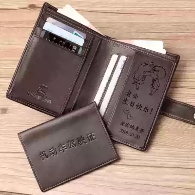 Leather lettering wallet-with mobile driver's license (send high-end brand gift box)